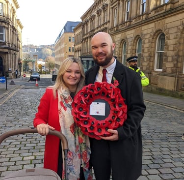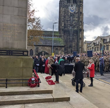 The Halifax Cenotaph, located in the city’s Grand Parade, is a poignant monument that captures the essence of remembrance. Erected in the aftermath of World War I, this cenotaph is not just a statue or an edifice; it is a tribute to the bravery and sacrifices of those who fought valiantly. Each year, on Remembrance Day, the cenotaph is adorned with wreaths of poppies, symbolising the bloodshed of soldiers and providing a powerful visual representation of our respect and remembrance. Our Chairman, Mr Luke Dalby did us proud and had the honour of laying our Wreath and Rondel at the feet of our great monument.